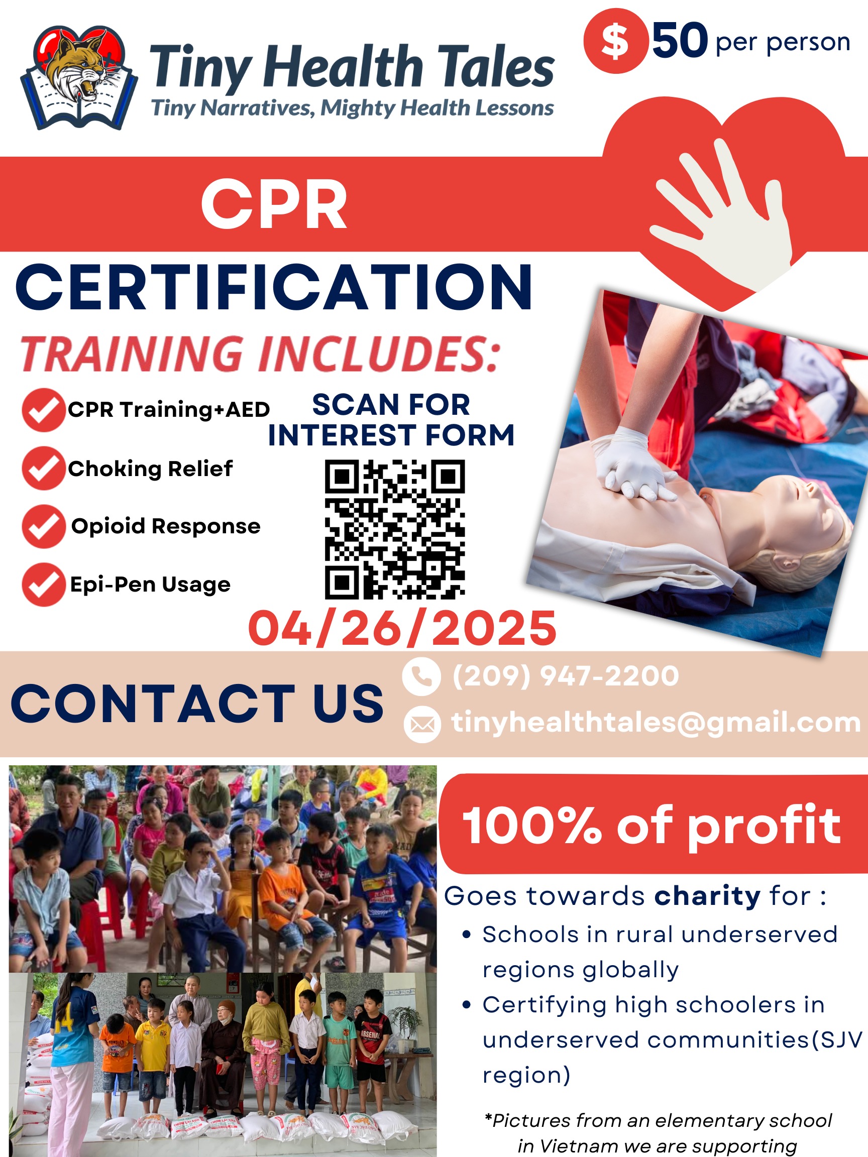 [Health_scholars] NEW DATE!!! CPR Certification at UC Merced - Tiny Health Tales Club - 04/26/2025