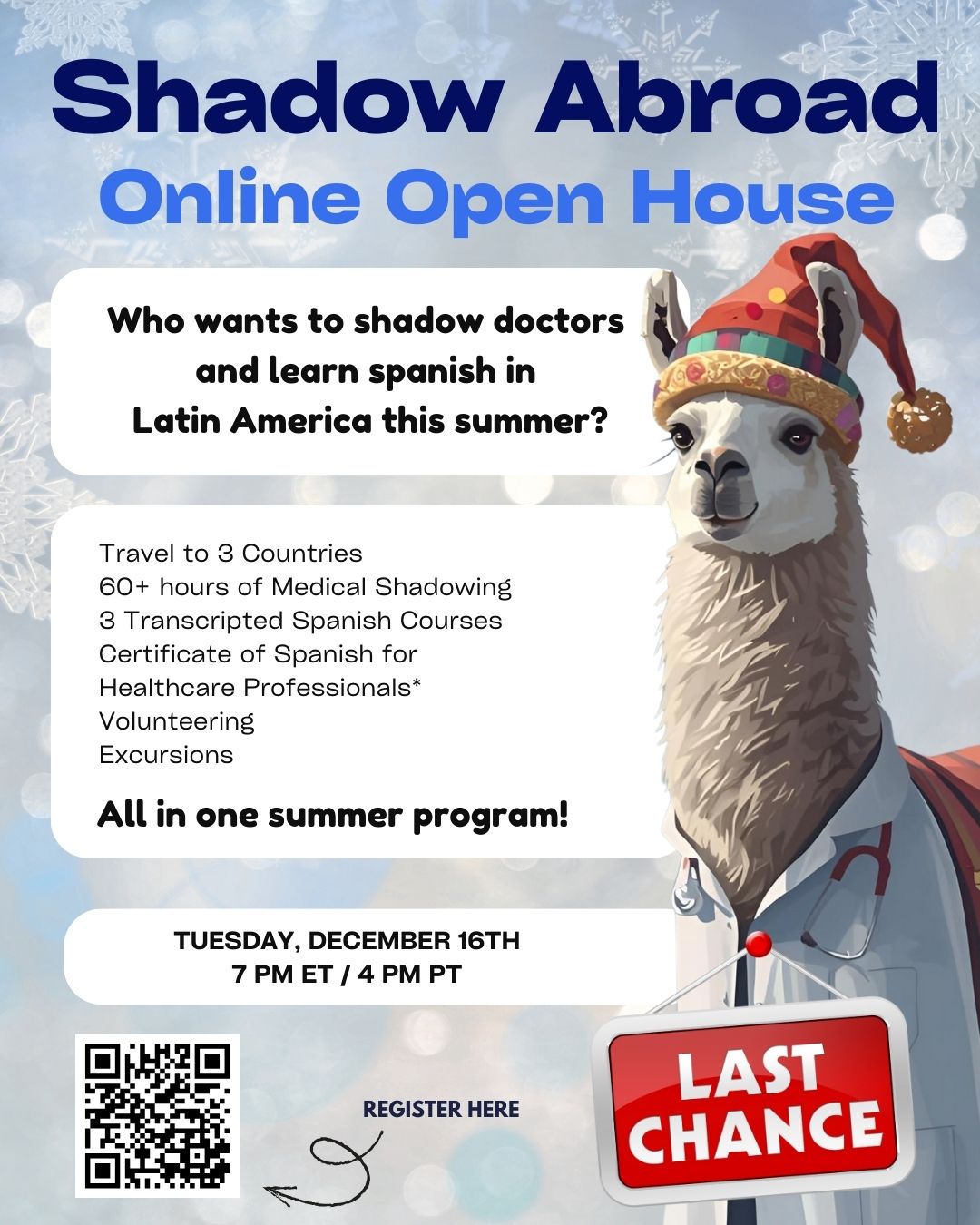 [Health_scholars] Shadow Abroad: (Premed/Prehealth) Spanish & Shadowing Online Open House 12/16