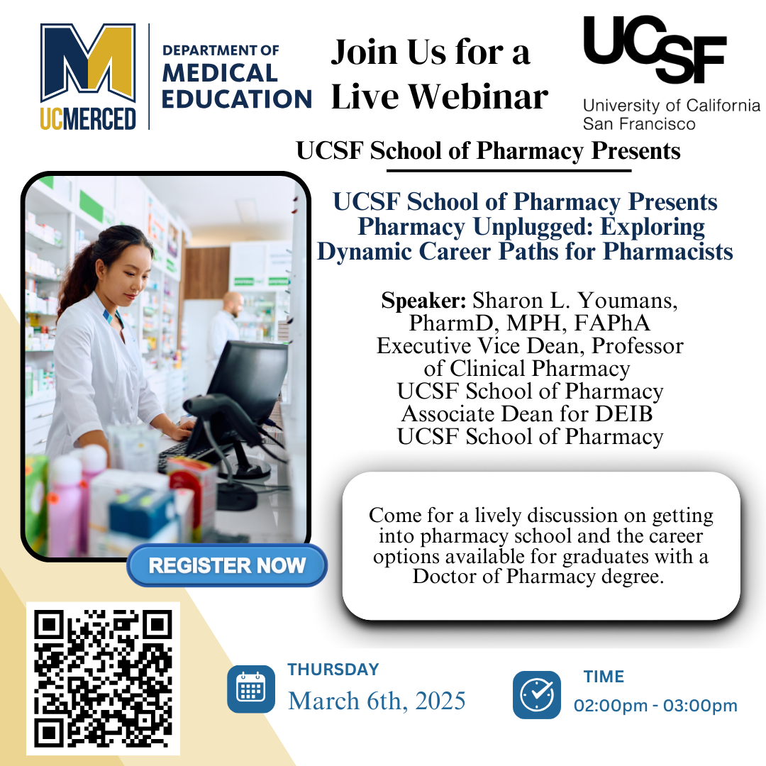 [Health_scholars] Webinars Hosted by UCM Department of Medical Education! (Graduate School Info Session & UCSF School of Pharmacy)!