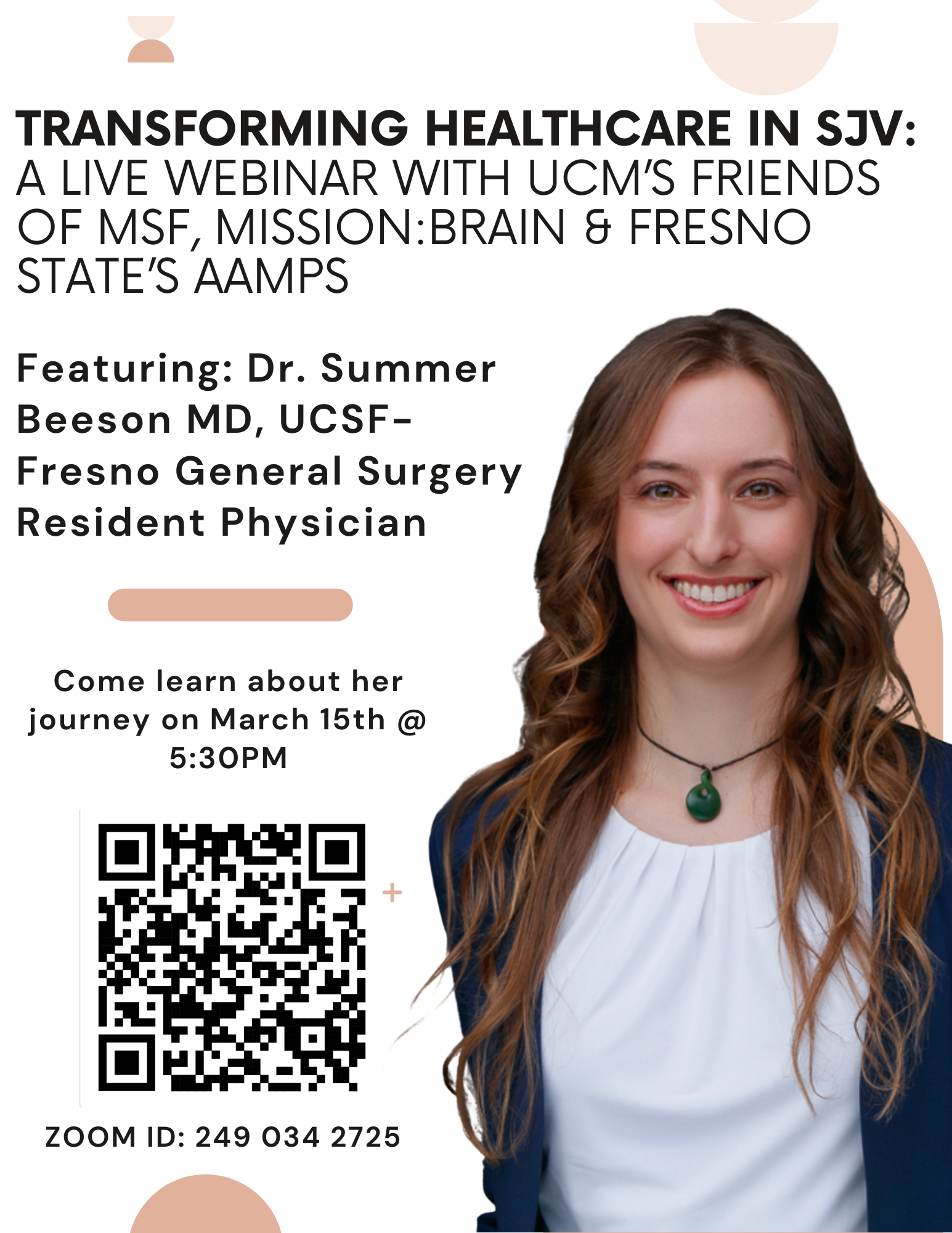 We are excited to invite you to our “Transforming Healthcare in SJV” webinar series, hosted by UC Merced’s Friends of MSF (Doctors Without Borders) and Mission:Brain Chapters.