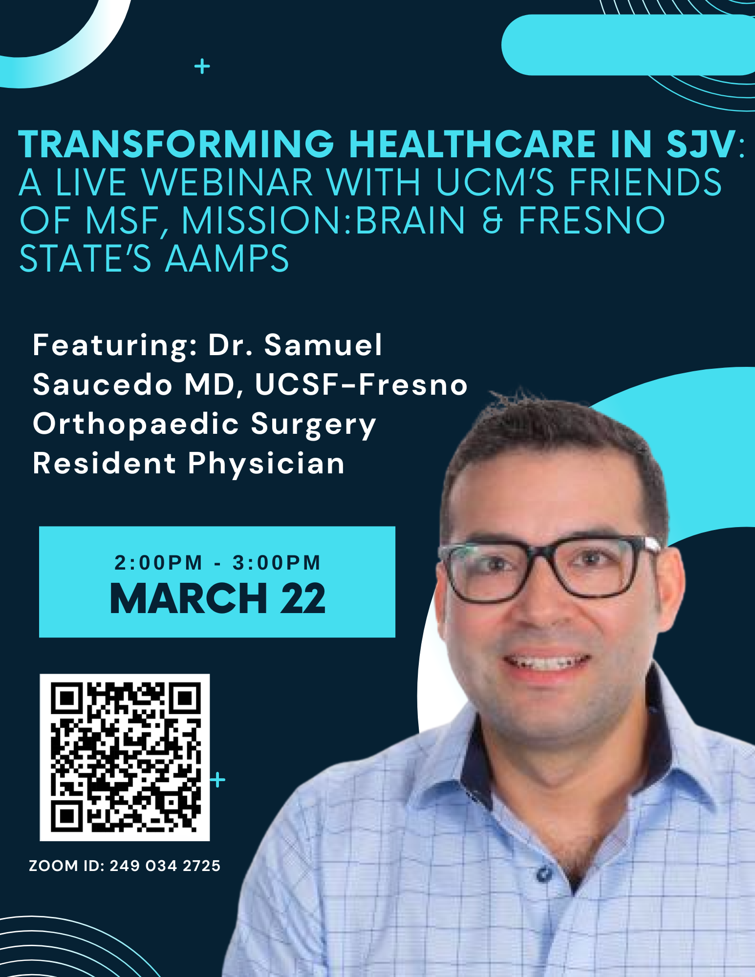 March 22 at 2:00 PM – Dr. Samuel Saucedo, MD, UCSF-Fresno Orthopaedic Surgery Resident Physician.