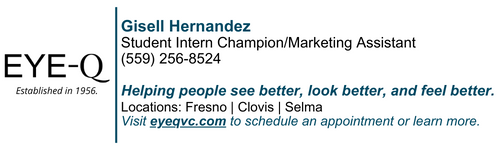 I've attached our flyer and Student Internship Application to this email and would be very grateful if you could share this unique learning experience with your students. The following is also a link to our webpage where students can find more information about our program: https://eyeqvc.com/internships/