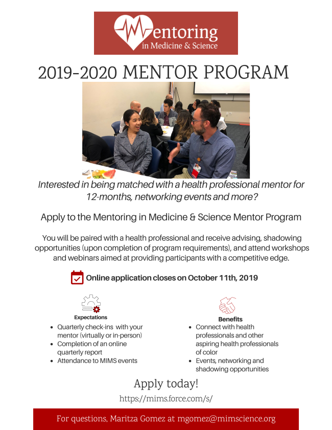 [UCM LIST: Healthprofadvising-l] MIMS 2019-2020 Mentor Program