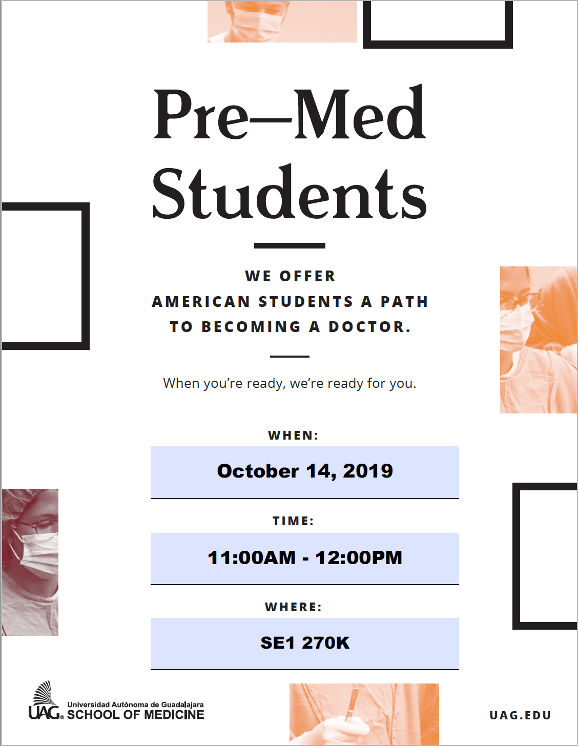 Interested in attending Medical School? Universidad Autonoma de Guadalajara School of Medicine will be coming on campus on Monday, October 14th from 11-12PM. Here you can learn about admissions into the program offered, classes required, and more. We hope to see you then! If there are any questions please feel free to contact prehealth at ucmerced.edu
