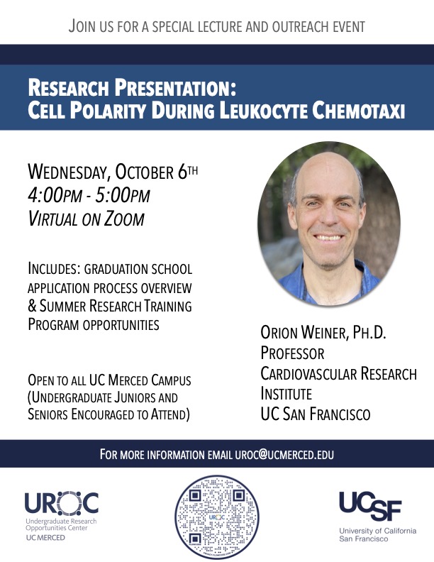 Professor Orion Weiner will share some of his research and discuss the graduate programs and summer research opportunities at UCSF. https://weinerlab.com<https://weinerlab.com/>