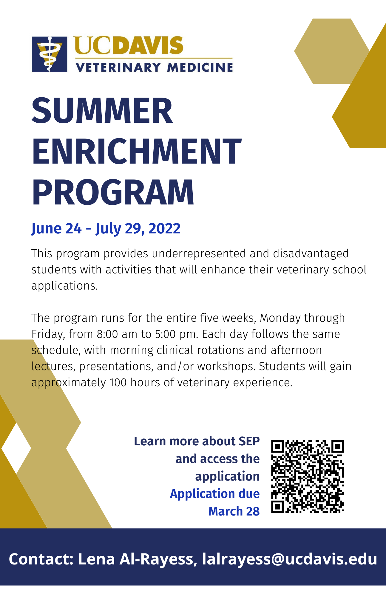 Message forwarded on behalf of UC Davis School of Vet Med Summer Enrichment Program: