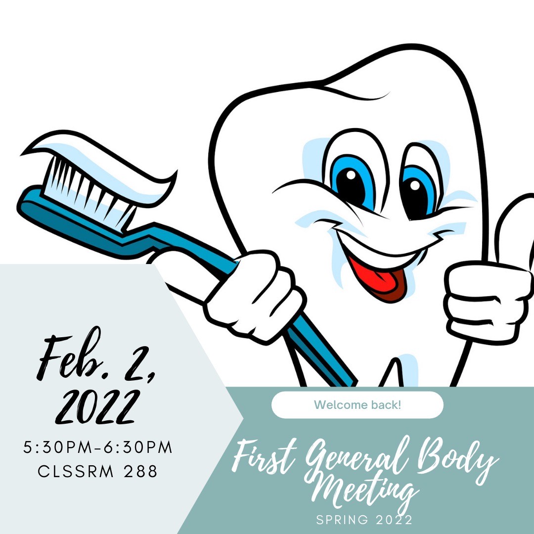 We’re having our first general meeting of the semester on Wednesday, February 2nd in CLSSRM 288. We hope to see pre-dentals there!