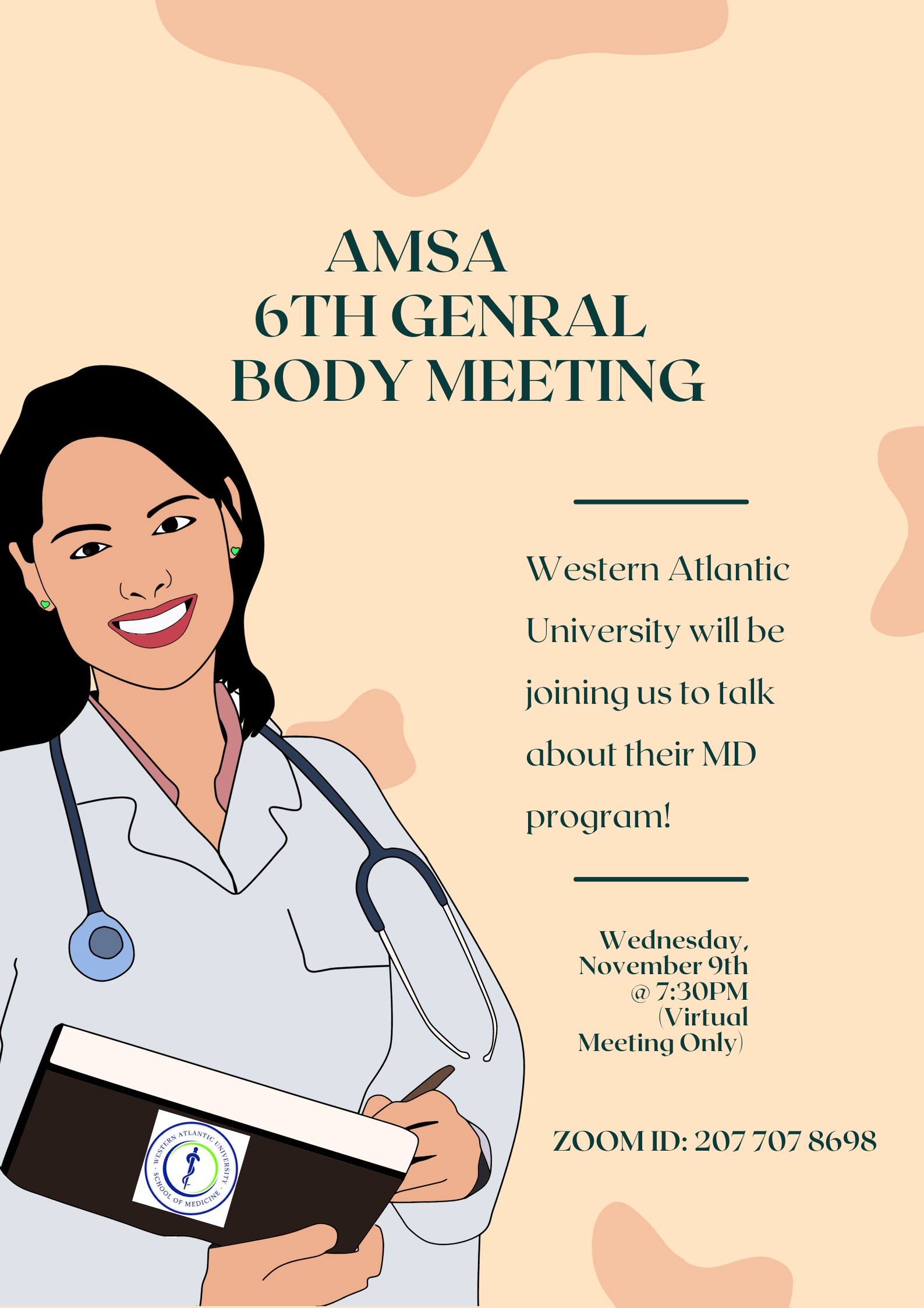 We will be having our guest speaker, Brad Schmidt, who is the Associate Director of Admissions. Dr. Brad Schmidt will be speaking about their MD program at Western Atlantic University.
