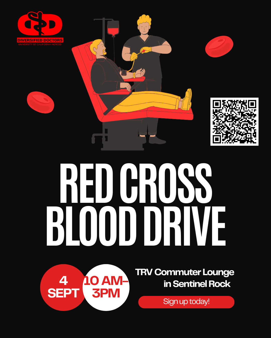If you’re a student that is extremely passionate about healthcare, community service, or simply wants to make a meaningful impact, this is a perfect opportunity to get involved. We are taking volunteers for any time from 9 am to help with set up to 3 pm to help with closing up . As a volunteer you will help check in donors, monitor them after donation, and work with the nurses to make sure everyone gets to donate. If interested in volunteering, please email coderinde at ucmerced.edu with your availability.