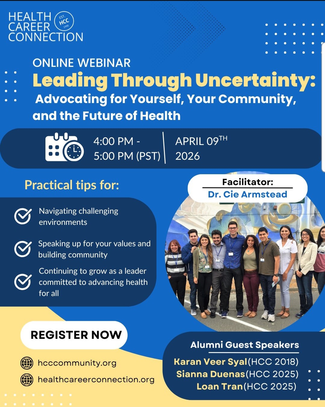 Join us for “Leading Through Uncertainty: Advocating for Yourself, Your Community, and the Future of Health<https://hcccommunity.org/>”, an interactive webinar bringing together HCC alumni and established leaders in a safe space to build confidence, resilience, and purpose.