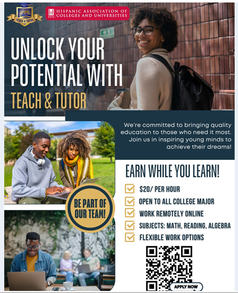 The Hispanic Association of Colleges and Universities (HACU),<https://hacu.net/> the only national association to be representing 500+ institutions in the United States, Latin America and Spain, as well as existing/emerging Hispanic-Serving Institutions (HSIs), is partnering with Teach & Tutor<https://teachtutor.com/>, an organization that provides accessible online tutoring and culturally relevant instruction services to students across schools in the United States. While Teach & Tutor supports all students, we specifically focus on supporting K-12 students in economically disadvantaged communities, traditionally underserved populations, and communities of color. We have a large and growing population of Hispanic students in K-12 who we are seeking HACU college students and alumni support to serve.