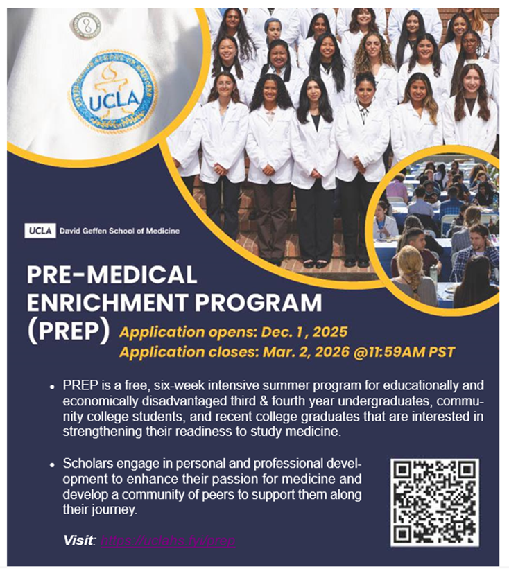 2026 UCLA PREP<https://medschool.ucla.edu/education/pre-med-pre-health-opportunities/pre-med-enrichment-program>