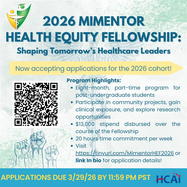[UCM LIST: Healthprofadvising-l] 2026 MiMentor Health Equity Fellowship - DEADLINE: 3/29/2026 at 11:59 PM PST