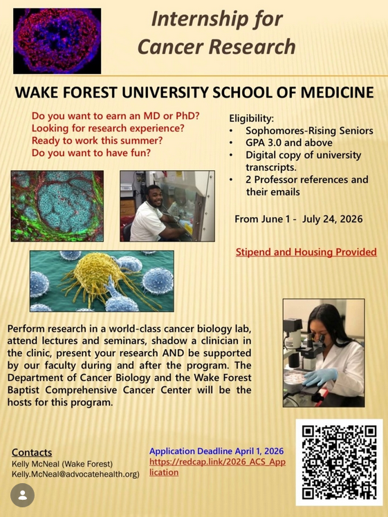 Desc: Wake Forest Internship Cancer Research Deadline 4-1-2026.png