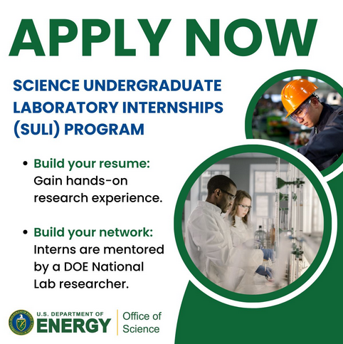 The Science Undergraduate Laboratory Internships (SULI) Program<https://science.osti.gov/wdts/suli> is now open for applications for the Fall 2026 Term.