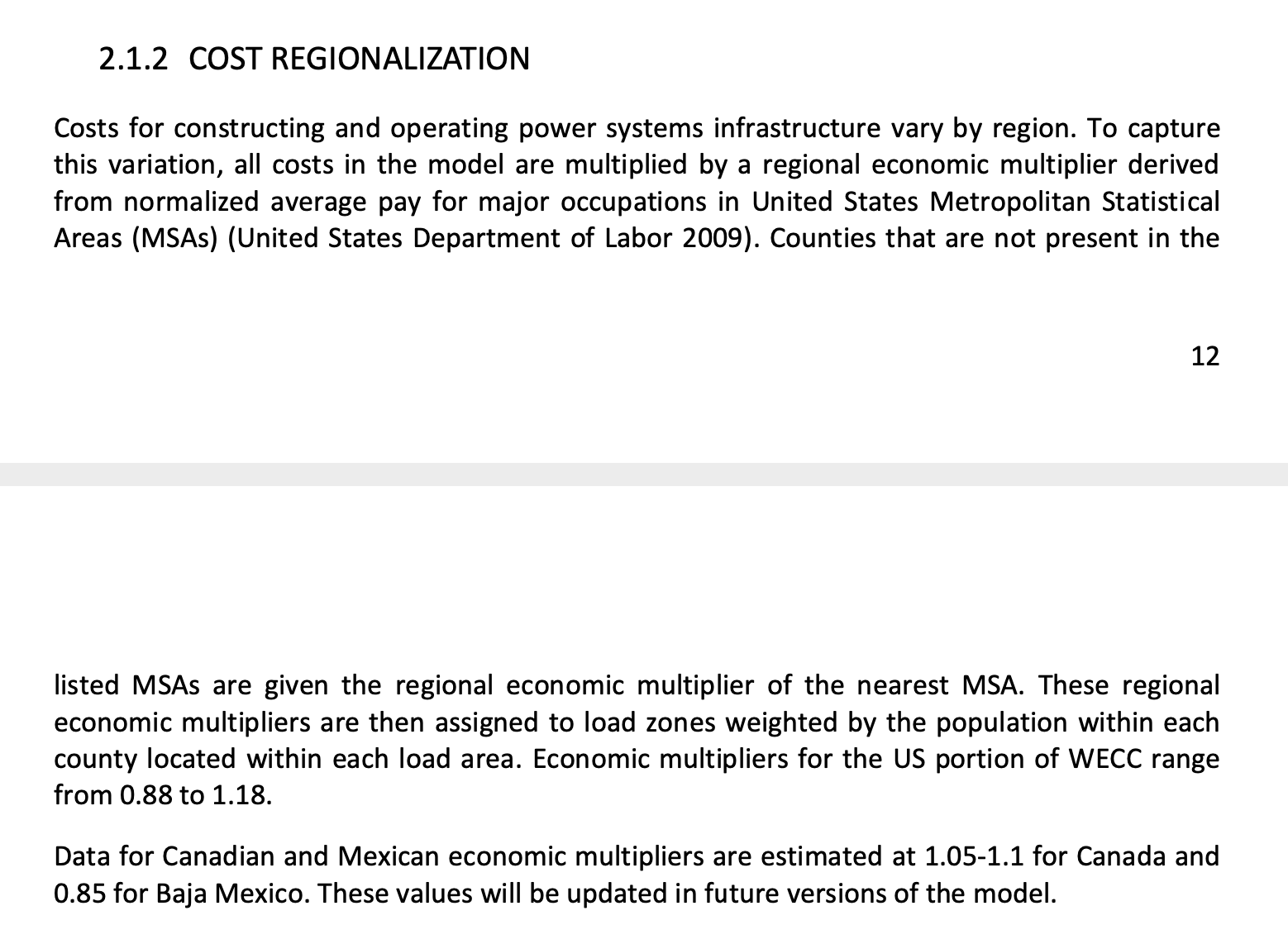 area. Economic multipliers for the US portion of WECC range from 0.88 to