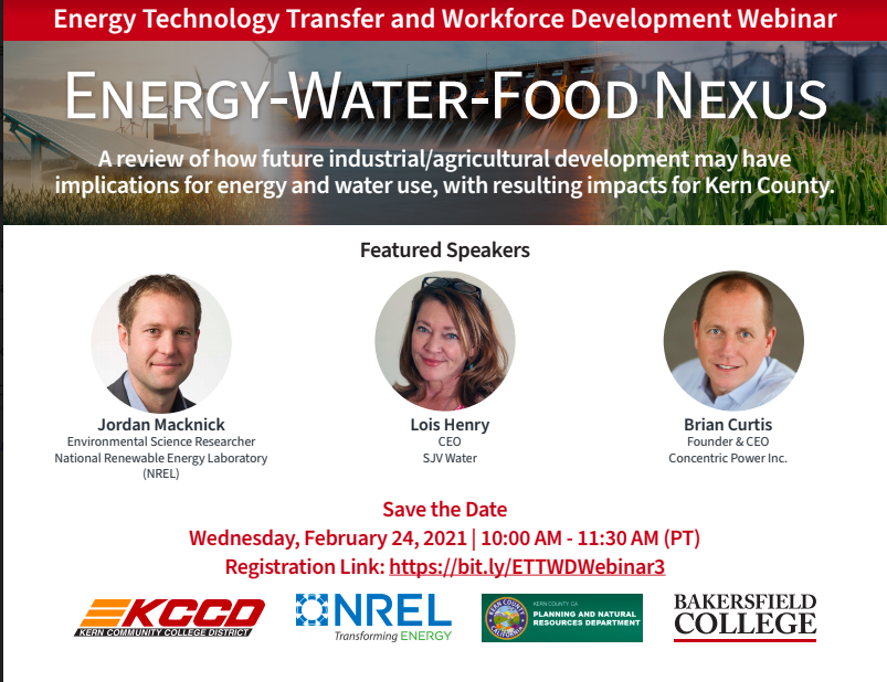 If you haven't done so already, please register for the 'Energy-Water-Food Nexus' webinar is open!