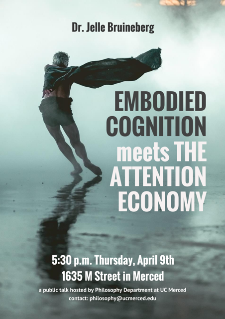UCM Philosophy will be hosting two talks by Dr. Jelle Bruineberg (University of Copenhagen, Denmark) on Thursday and Friday, April 9 and 10. Both are free and open to the public. If you’re a student at other school, or community college faculty, contact me (danhicks at ucmerced.edu<mailto:danhicks at ucmerced.edu>) for a parking subsidy and directions for the campus talk on April 10.