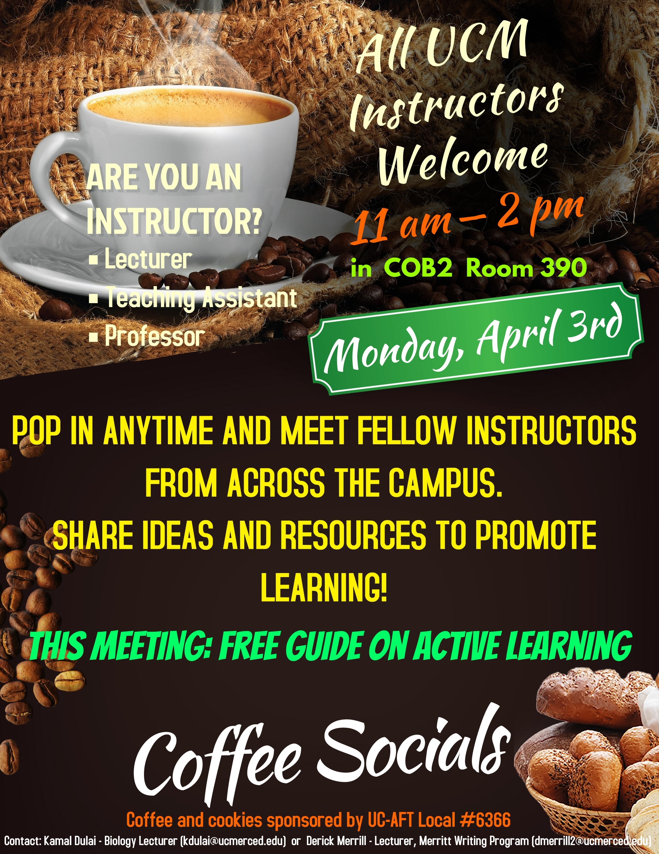 Pop in anytime and meet fellow instructors from across the campus.