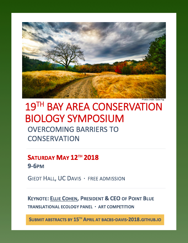 On behalf of the Society for Conservation Biology-Davis Chapter, I would like to cordially invite you to the Bay Area Conservation Biology Symposium!