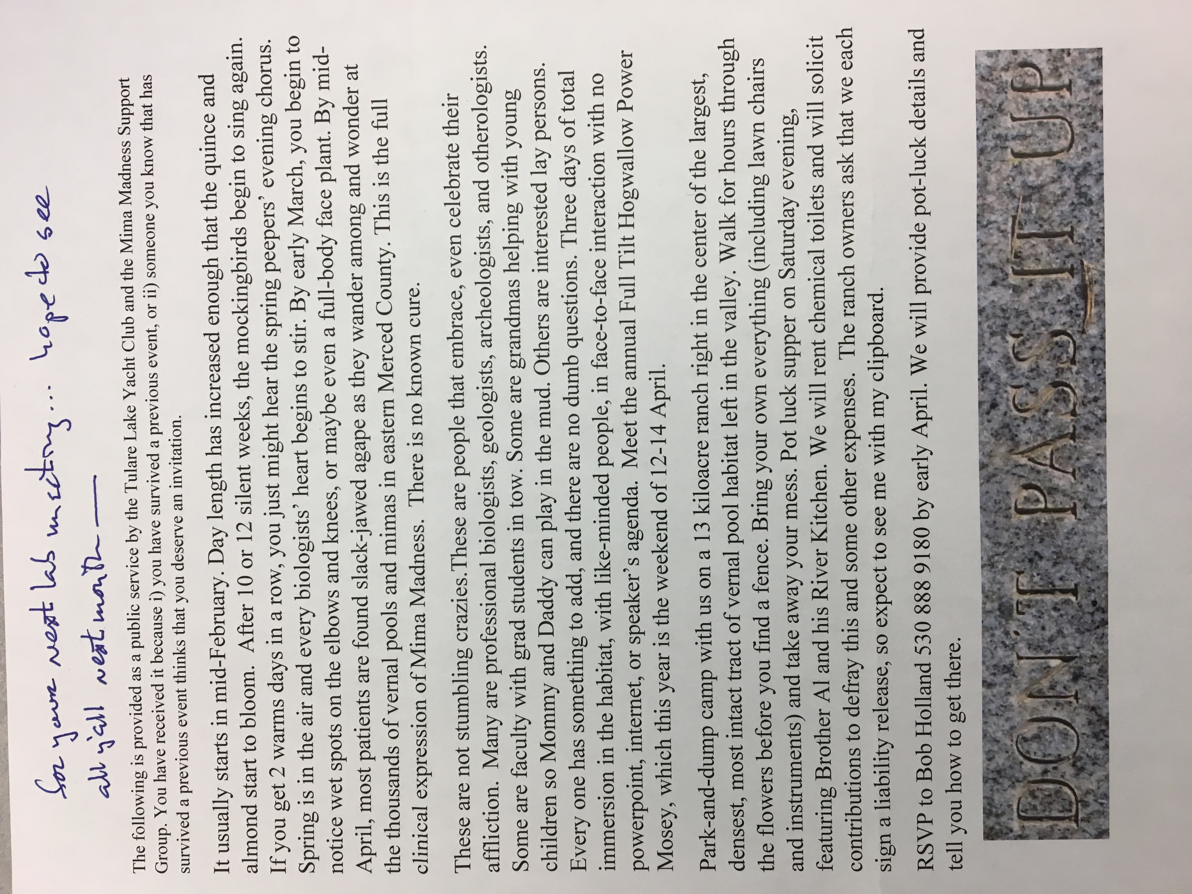 See attached for details on this year's Power Mosey. Letter sent by Bob