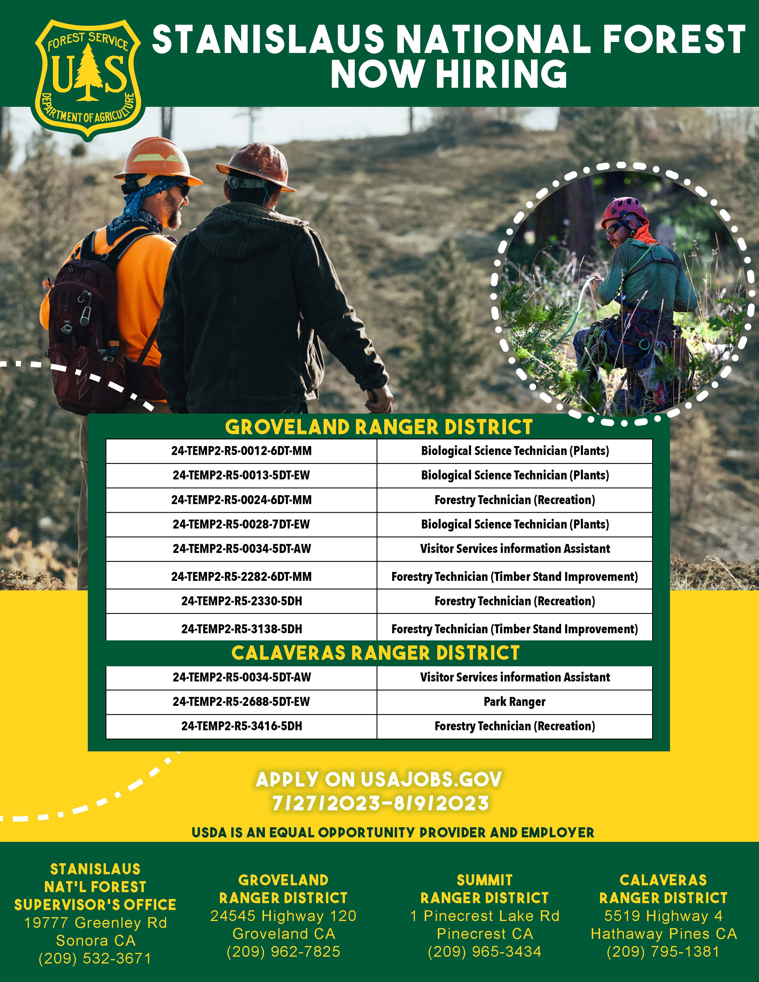 Stanislaus National Forest. These positions will be great for applicants