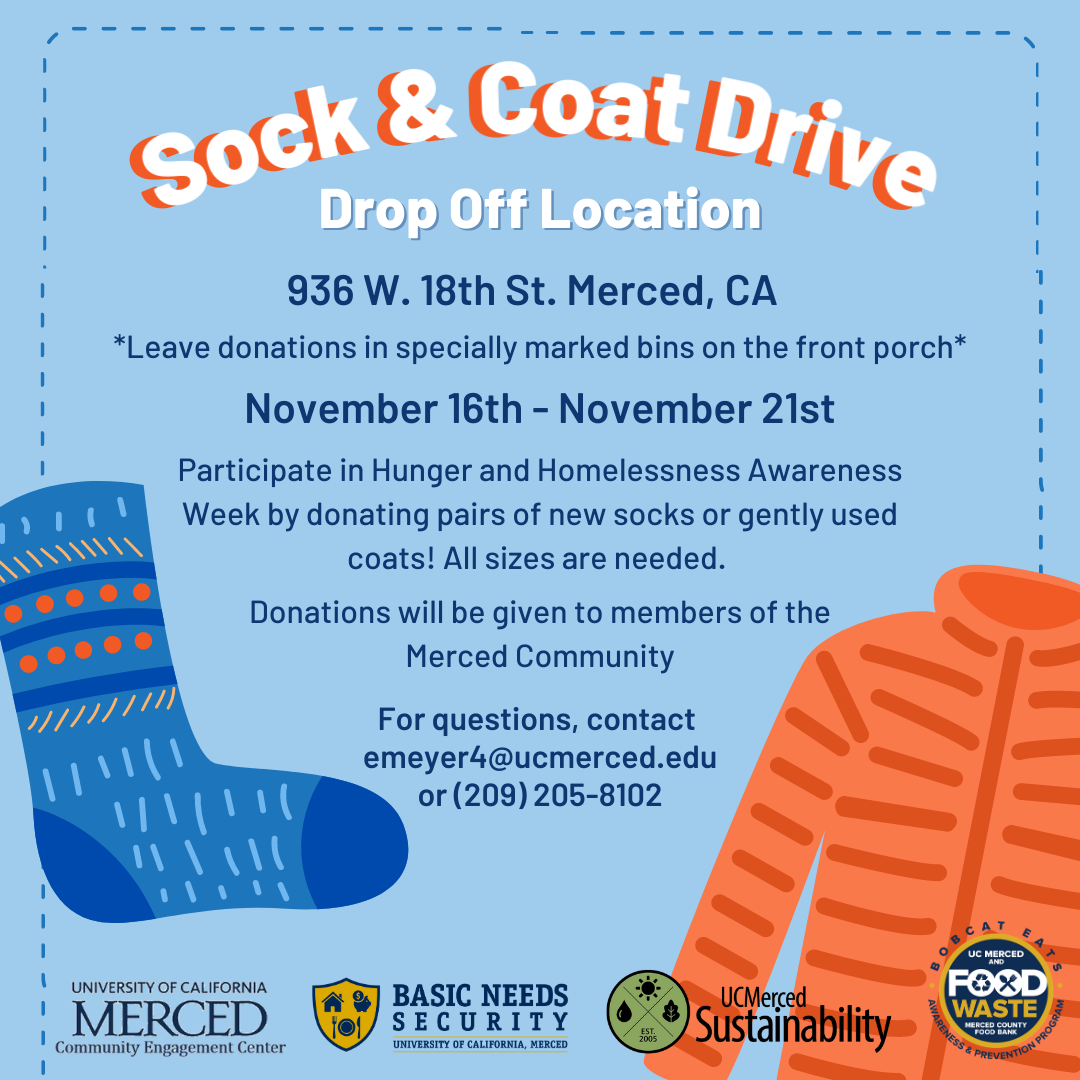UC Merced is co-hosting a clothing drive (see attached flyer) for the Merced Community