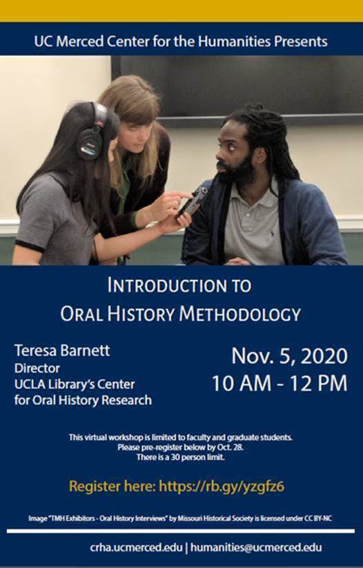 Please join us for the upcoming workshop with Teresa Barnett, Director, UCLA Library's Center for Oral History Research.