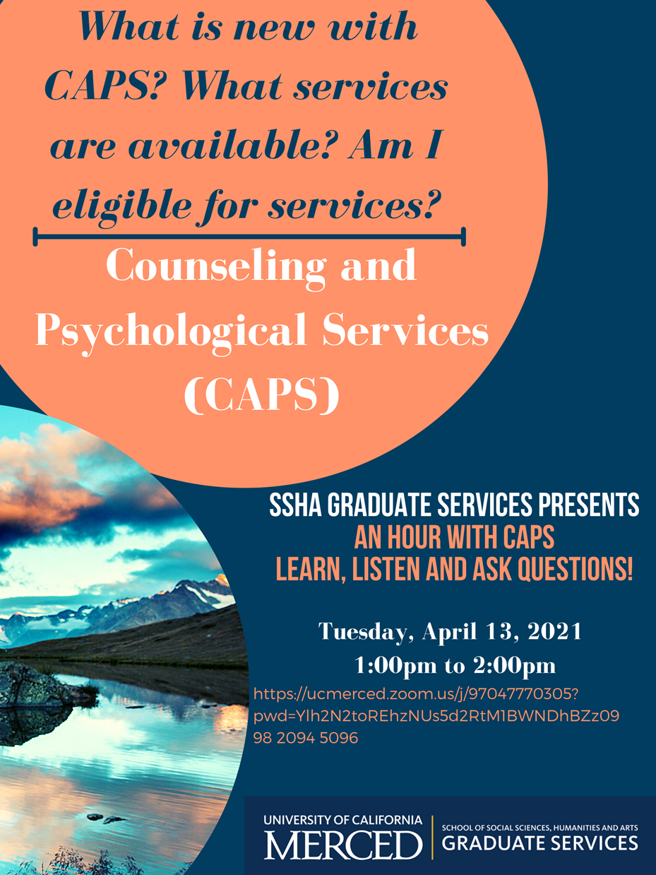 SSHA Graduate Services<https://ssha-grad.ucmerced.edu/> is excited to announce a special presentation with Counseling and Psychological Services (CAPS)<https://counseling.ucmerced.edu/> for all SSHA graduate students.
