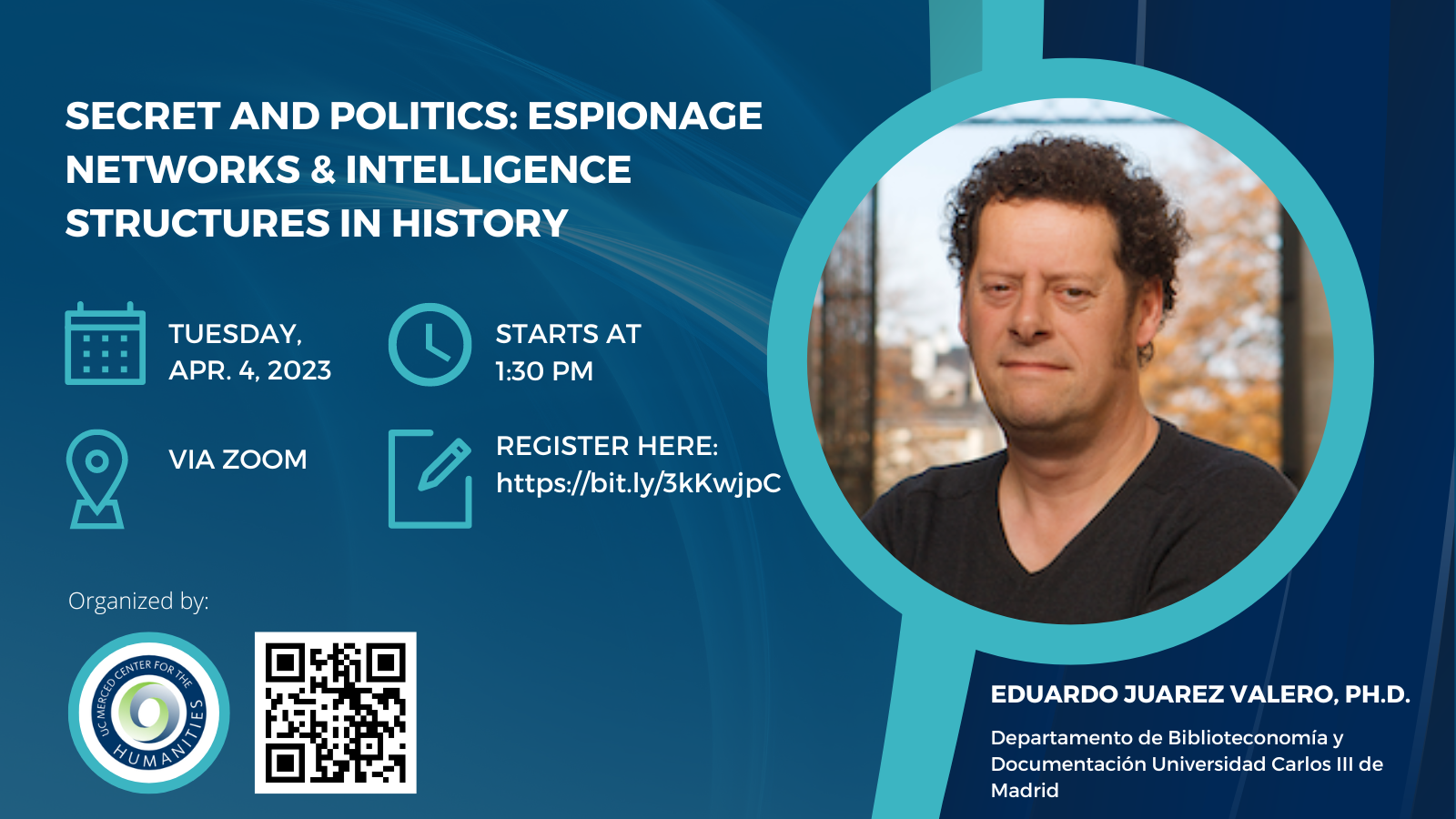 Secret & Politics: Espionage Networks & Intelligence Structures In History with Eduardo Juárez Valero, Tuesday, Apr. 4, 2023 at 1:30 PM via zoom. Register here<https://bit.ly/3kKwjpC>.