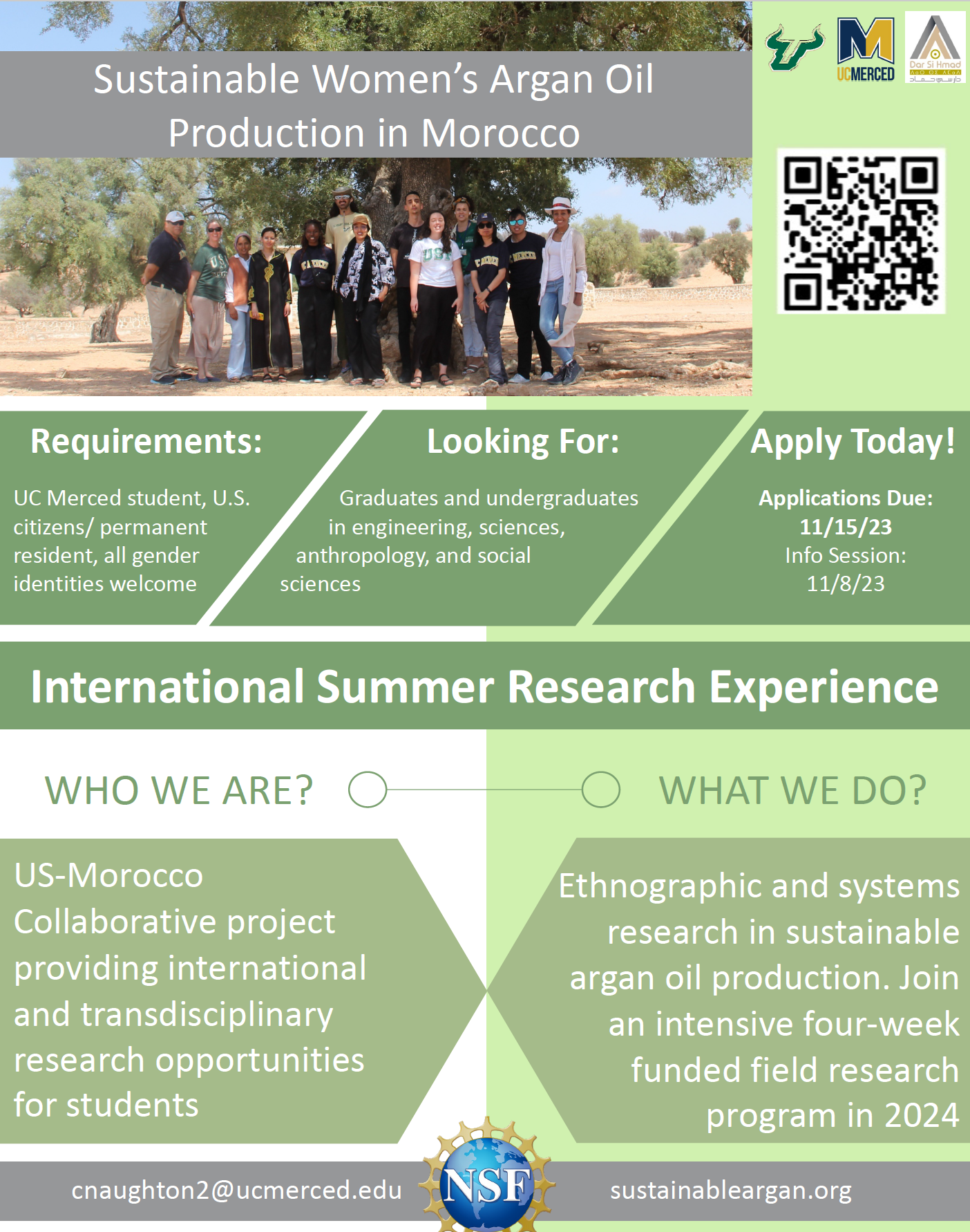 Register here<https://ucmerced.zoom.us/meeting/register/tZEvdu-gqTIiGdNeBr1ccMFDARJ-Z2xh4AtL> to learn more and ask questions at our zoom information session on Wednesday, November 8th at 8AM PDT (we start early for time difference in Morocco).