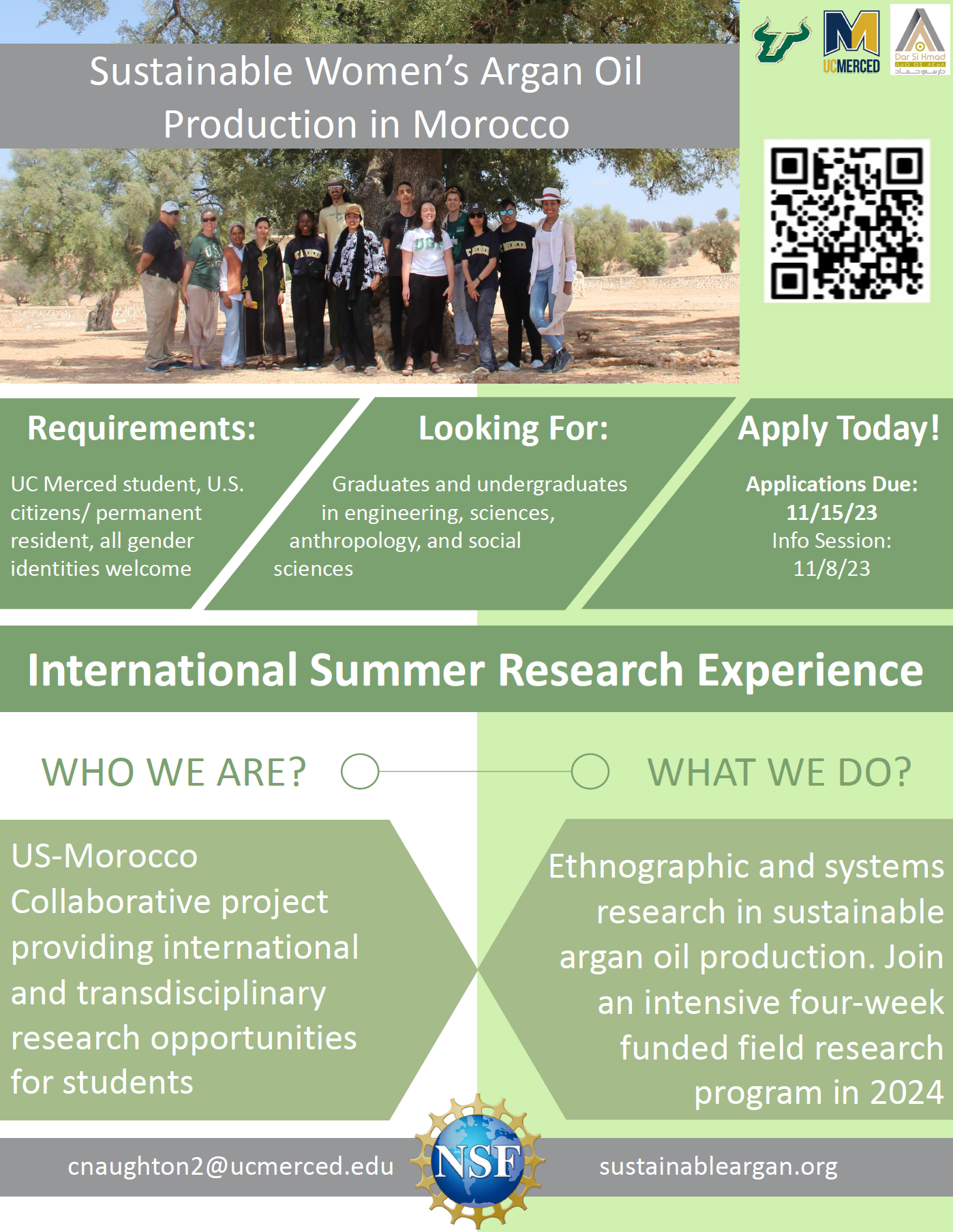 Register here<https://ucmerced.zoom.us/meeting/register/tZEvdu-gqTIiGdNeBr1ccMFDARJ-Z2xh4AtL> to learn more and ask questions at our zoom information session on Wednesday, November 8th at 8AM PDT (we start early for time difference in Morocco).